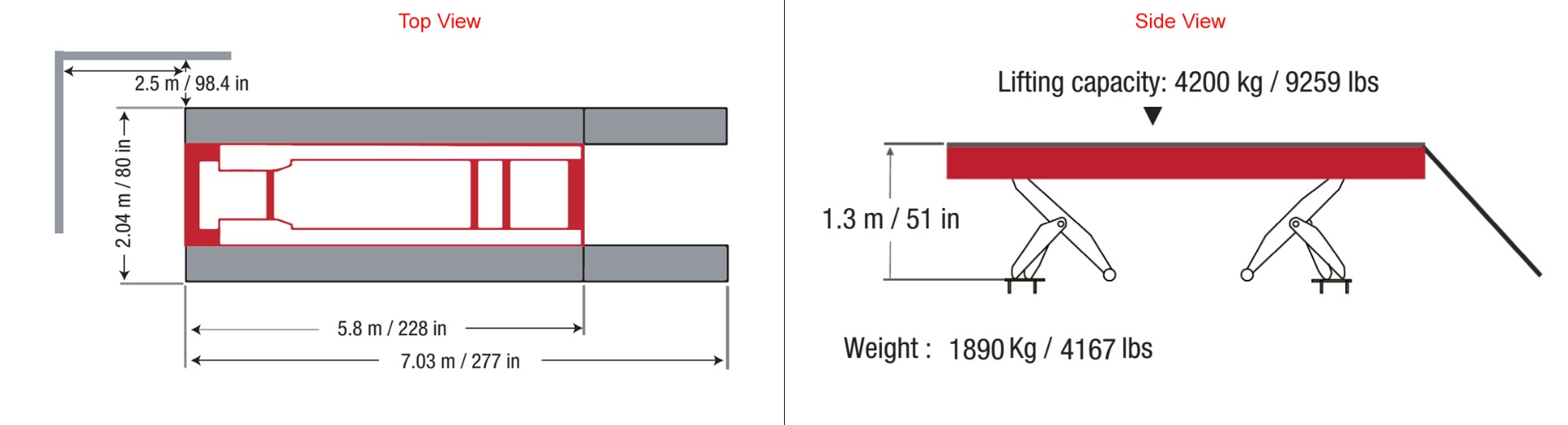5,8 m extra lange oprijbank met dubbele schaarlift