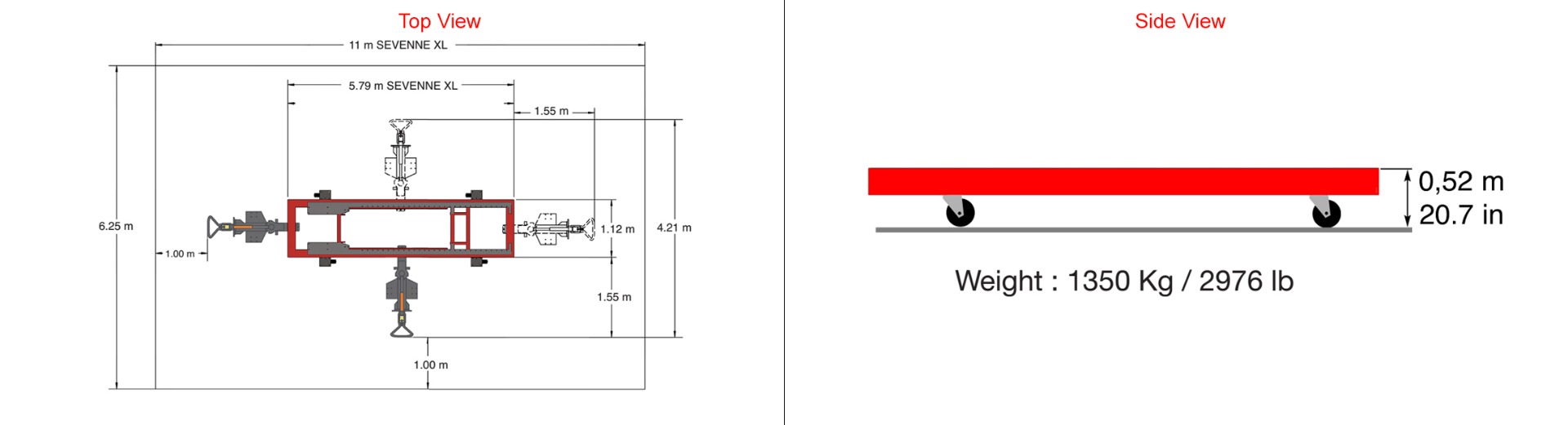 Verlengde bank op wielen is speciaal ontworpen voor het repareren van grotere bedrijfsvoertuigen. Het belangrijkste kenmerk van deze bank is dat deze onder een 2-koloms hefbrug kan worden geplaatst voor het laden en dat hij gemakkelijk tussen werkvakken kan worden verplaatst. De lengte van 5,8 m (19 ft) is geschikt voor lichte vrachtwagens en bedrijfsvoertuigen. Het universele randframe maakt een snelle verankering mogelijk; afstelling van de klemmen, wielen, transportgreep; en multifunctionele steunen